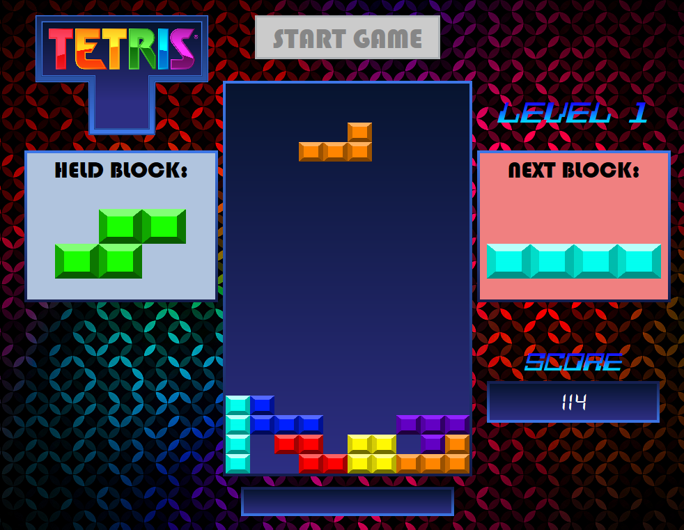 The classic tetris game, with level progression, simple UI elements and working wall kicks.